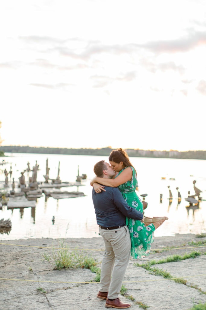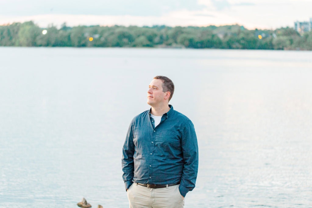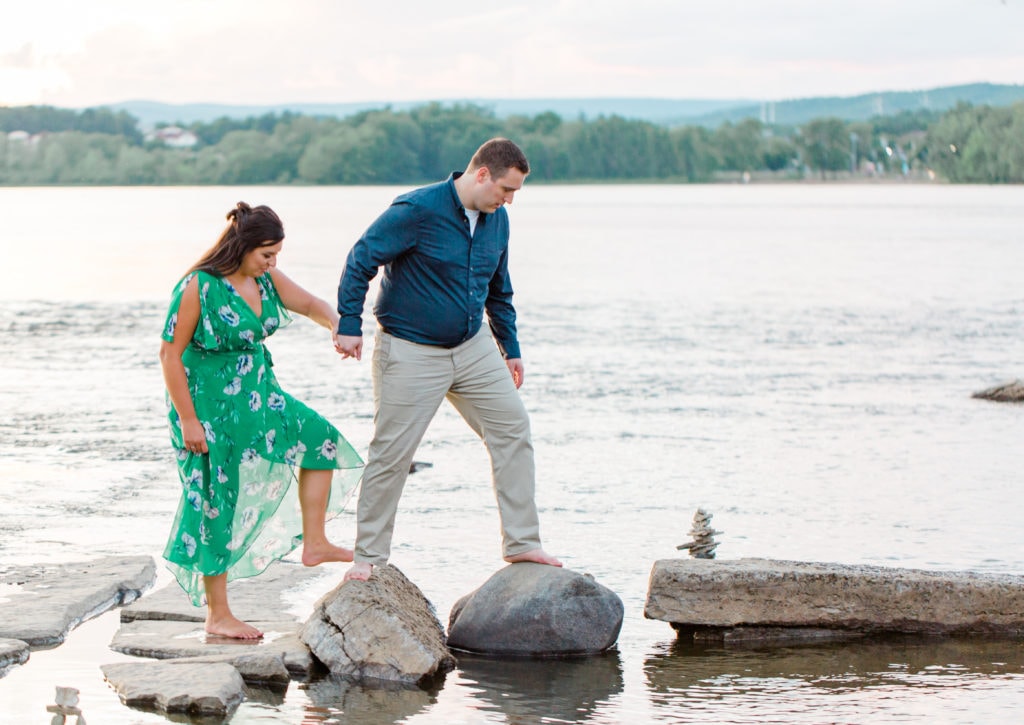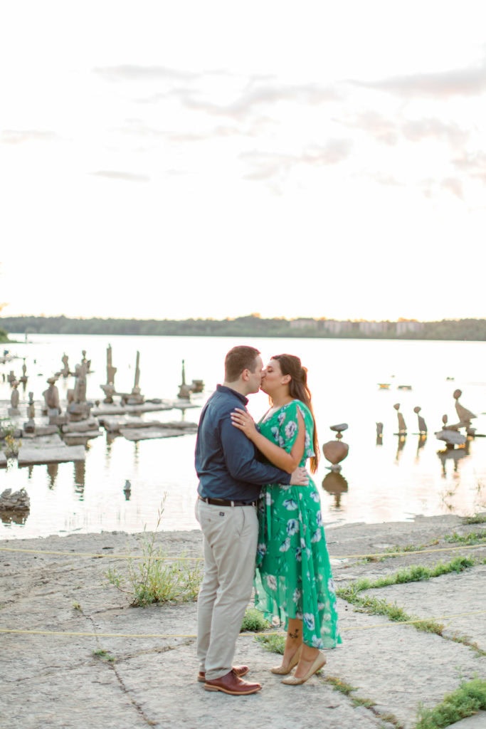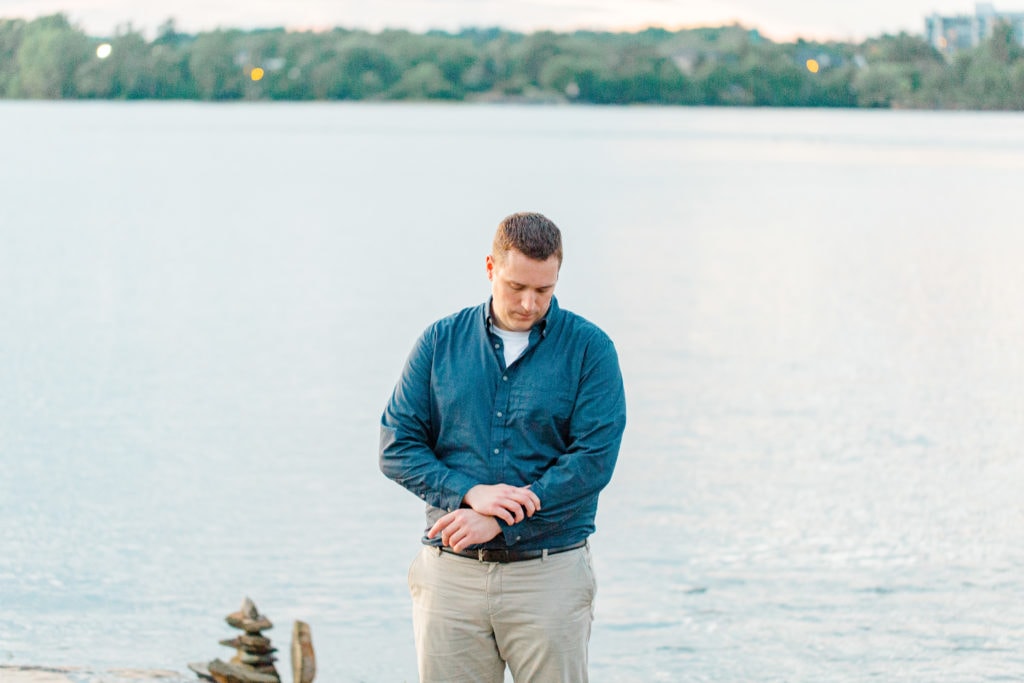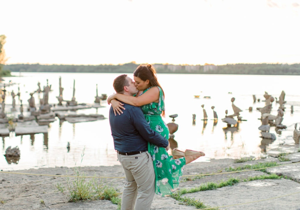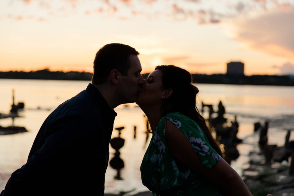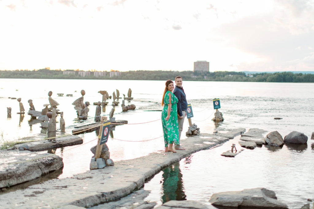The sun was quickly fading but earlier that week I had seen someone online posting a visit to this space. We asked if we could quickly jump to this new spot for the last few minutes of the session. Remic Rapids Park is situated on the shore of the Ottawa River, about four kilometers from Parliament Hill. This site provides stunning views of the river and an epic sunset. It was clear that it was a hot spot for photographers as well since so many were capturing the sun as it set behind us!