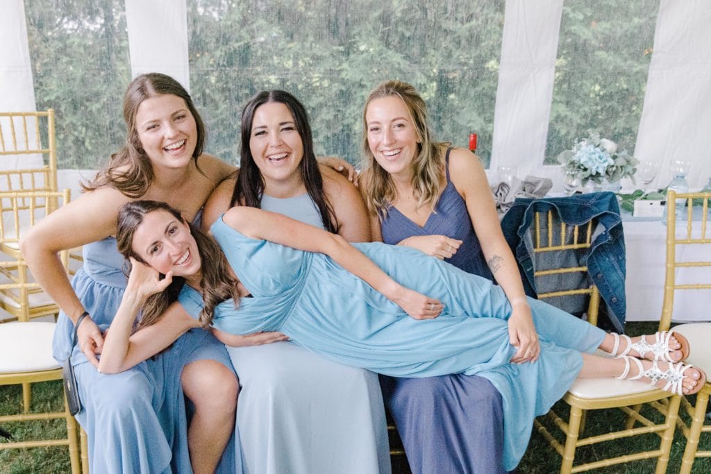 Originally Hailey and Seb were planning a wedding in PEI. This spot was special to them however so Hailey used as much of the decor, look, and feel of the day to be east coast. All the glass washed up on the beach that was collected was such a beautiful way to tie it all in together. I am a sucker for blues as well so I loved that each bridesmaid was wearing a colour and style she wanted as well. Hailey is one of my most relaxed brides you could feel this throughout the day. Nothing felt rushed, nothing felt stressed. Splendid day all around.