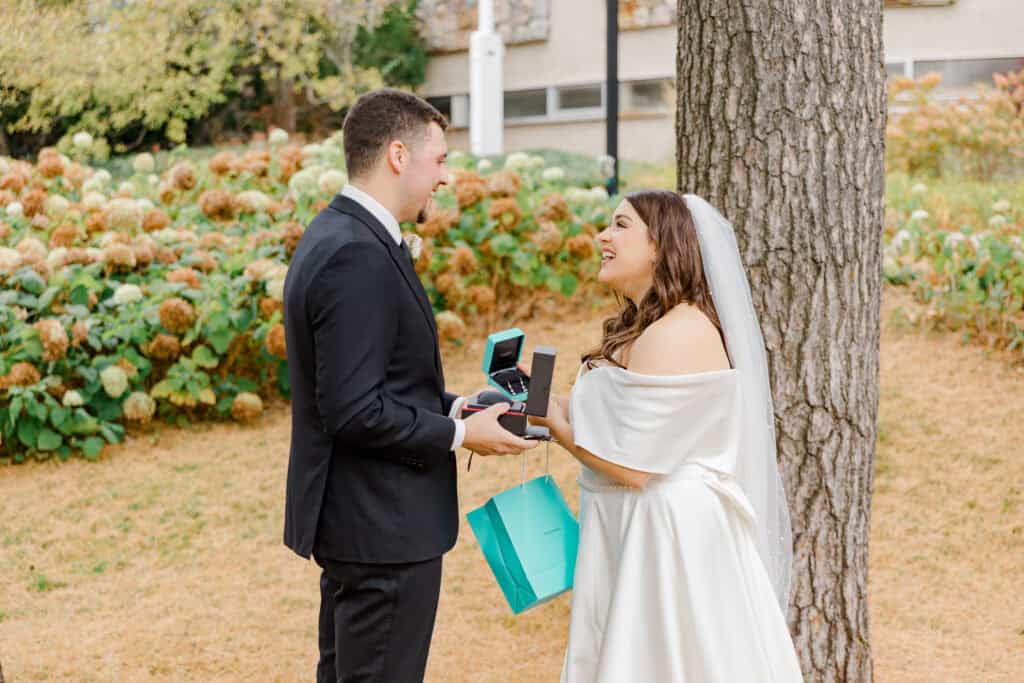 One of the most touching parts of Paige and Michael’s day was their first look. Surrounded by the quiet beauty of the Ottawa Hunt & Golf Club gardens, they shared private vows with one another.